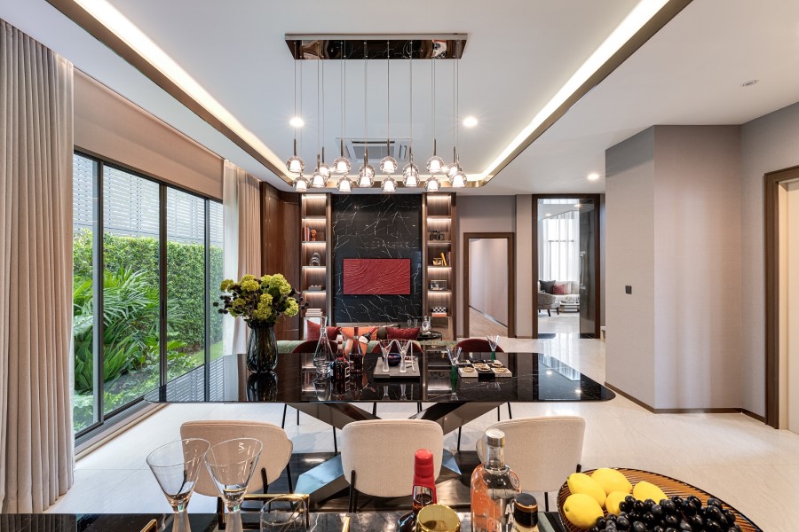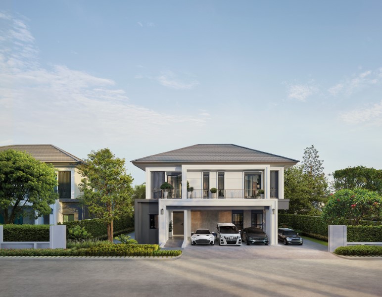ทั้งนี้ สำหรับโครงการ SHAWN ปัญญาอินทรา บ้านเดี่ยวติดถนนใหญ่ สไตล์ MODERN TROPICAL CONTEMPORARY ท่ามกลางสิ่งอำนวยความสะดวกสำหรับการใช้ชีวิต ความพิเศษเริ่มจากที่ดินทุกแปลงเริ่มต้นที่ 100 ตารางวา ทำให้โครงการนี้ตอบโจทย์ครอบครัวขยายที่ต้องการพื้นที่ใช้สอย และที่ดินขนาดใหญ่ งานออกแบบบ้าน สะท้อนความเป็นส่วนตัว ภายใต้แนวคิด “Crafted to Last” โดยใช้ Facade เรียบง่าย ดึงดูดธรรมชาติเข้ามาเป็นส่วนหนึ่งในการออกแบบ เช่น ลวดลายของผิวไม้และลายหิน สีเอิร์ธโทน ทำให้บ้านมีชีวิตชีวา และน่าอยู่มากยิ่งขึ้น แปลนจะเป็นบ้านหน้ากว้าง สร้างความโอ่อ่าของตัวบ้าน และทำให้จัดสรรพื้นที่ในบ้านได้ดีขึ้น และจุดเด่นคือมี Double Volume บริเวณหน้าบ้าน ทั้งหมดนี้ทำให้มีแสงธรรมชาติเข้ามาทั่วถึงทั้งบ้าน ทำให้น่าอยู่อาศัยมากขึ้น ห้องนอนทุกห้องมีขนาดใหญ่ พร้อมห้องน้ำในตัวทุกห้อง เอ็กซ์คลูซีฟเพียง 72 ครอบครัว ทำเลใกล้โรงเรียนและสิ่งอำนวยความสะดวกมากมาย