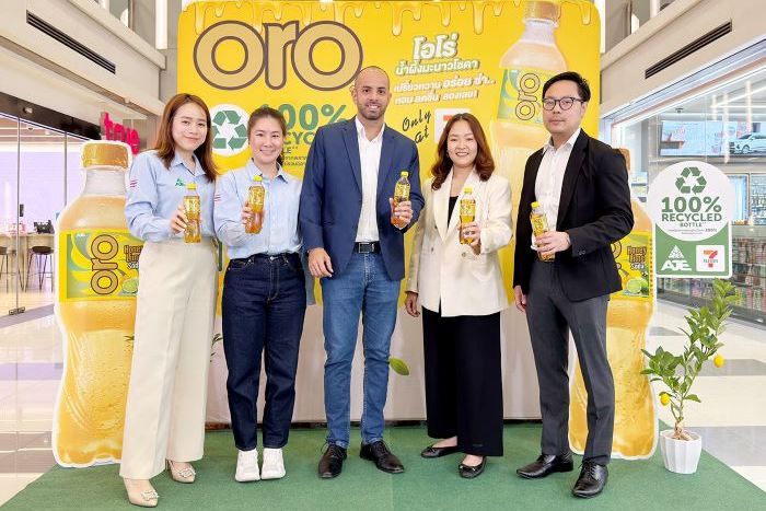 นางสาวนริศรา บำรุงศิริ ผู้จัดการทั่วไป สำนัก Merchandising – Packaged Beverage บริษัท ซีพี ออลล์ จำกัด (มหาชน) กล่าวเสริมว่า “การร่วมพัฒนาผลิตภัณฑ์ ‘โอโร่’ สอดคล้องกับการเปลี่ยนผ่านสู่เชิงรุกด้วย CP Sustainability Center of Excellence (COE) ที่ขับเคลื่อนเป้าหมายความยั่งยืน 3 ด้านผ่านกลยุทธ์ ‘2 ลด 4 สร้าง 1 DNA’ (สิ่งแวดล้อม สังคม และบรรษัทภิบาล) ของเรา ในการช่วยลดผลกระทบเชิงลบต่อสิ่งแวดล้อม เพื่อลดการปล่อยก๊าซเรือนกระจกสู่ชั้นบรรยากาศของโลก รวมถึงสอดรับกับพฤติกรรมที่เปลี่ยนแปลงไปของผู้บริโภคยุคปัจจุบัน ที่เริ่มมองหาผลิตภัณฑ์ที่ไม่เพียงรสชาติดีและคุ้มค่า แต่ยังต้องมีกระบวนการผลิตที่เป็นมิตรต่อสิ่งแวดล้อม ซึ่งการเปลี่ยนมาใช้บรรจุภัณฑ์ rPET 100% สามารถช่วยลดการปล่อยคาร์บอนได้สูงถึงร้อยละ 79 เมื่อเทียบกับการใช้พลาสติกแบบเดิม และช่วยสร้างทางเลือกใหม่ให้แก่ลูกค้าเซเว่น อีเลฟเว่น ทั่วประเทศได้เป็นอย่างดี”