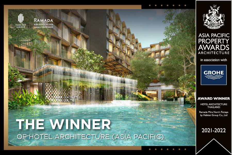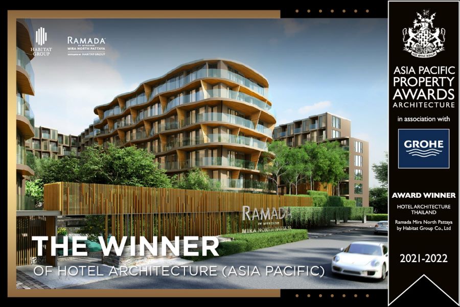 บริษัท ฮาบิแทท กรุ๊ป ผู้นำด้านการพัฒนาโครงการอสังหาริมทรัพย์ระดับพรีเมียมเพื่อการลงทุนของไทย โชว์ผลงานคุณภาพคว้ารางวัลต่อเนื่องในเวทีระดับนานาชาติ ล่าสุดโครงการ ‘รามาด้า มิรา นอร์ท พัทยา’ คอนโดใหม่สไตล์รีสอร์ทเพื่อการลงทุนใจกลางพัทยา ได้รับรางวัลชนะเลิศสาขา “Hotel Architecture” จากเวที ‘Asia Pacific Property Awards 2021-2022’ ตอกย้ำความสำเร็จในการสร้างสรรค์โพรดักส์คุณภาพ ที่มีเอกลักษณ์ในการออกแบบที่แตกต่าง เพื่อสร้างมูลค่าให้กับการใช้ชีวิต และการลงทุน