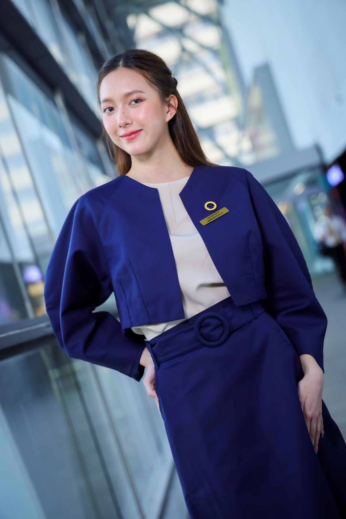 สำหรับทีมงานผู้ให้บริการหน้าศูนย์การค้า ยูนิฟอร์มเน้นภาพลักษณ์ที่เรียบหรูและมั่นใจ ขณะที่พนักงานดูแลร้านค้าภายในศูนย์ฯ ได้รับการออกแบบยูนิฟอร์มในโทนที่ดูผ่อนคลายมากขึ้น แต่ยังคงความคล่องตัวและความเป็นมืออาชีพ เพื่อรองรับการเคลื่อนไหวที่ต่อเนื่องตลอดทั้งวัน พร้อมสร้างบรรยากาศที่เป็นมิตรและเข้าถึงง่ายสำหรับลูกค้าทุกกลุ่ม การออกแบบทั้งหมดเกิดขึ้นจากความตั้งใจที่จะยกระดับประสบการณ์ของลูกค้า โดยมองว่าพนักงานคือผู้ต้อนรับด่านแรก เปรียบเสมือน “ห้องรับแขก” ที่ถ่ายทอดความประทับใจแรกให้กับผู้มาเยือนเซ็นทรัลเวิลด์ในทุกวัน