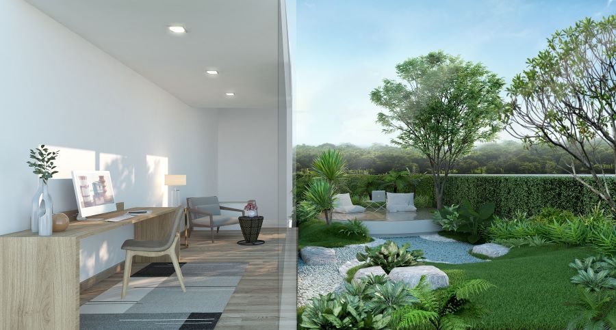 นอกจากนี้ การออกแบบพื้นที่สำหรับการอยู่อาศัยยังคำนึงถึงไลฟ์สไตล์แบบ New Normal ไม่ว่าจะเป็นพื้นที่ทำงานและพื้นที่พักผ่อน อีกทั้งยังมีพื้นที่ส่วนตัวที่กว้างขวาง ทำให้ฟังก์ชันการใช้สอยของทาว์นโฮม เนอวานา ดีฟายน์ ครบครันไม่แพ้บ้านเดี่ยวที่อาจต้องเดินทางไกลจากเมืองมากขึ้น