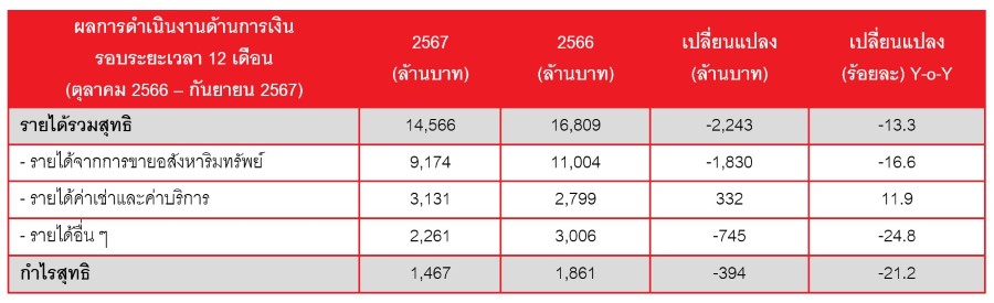 เฟรเซอร์ส พร็อพเพอร์ตี้ ประเทศไทย กางผลประกอบการปีงบการเงิน 67 (ต.ค. 66-ก.ย. 67) รับรู้รายได้ 14,566 ล้านบาท กำไร 1,467 ล้านบาท ธุรกิจที่อยู่อาศัยโดนมรสุมรอบด้านฉุดรายได้ลด ส่วนธุรกิจสร้างรายได้ประจำ (Recurring Income) เติบโตสดใส โรงงานและคลังสินค้าให้เช่าในไทย-อินโดนีเซีย-เวียดนามดีมานด์ทะลัก ดันอัตราการเช่ารวมของพอร์ตฯ ทำสถิติใหม่อยู่ที่ 87% ด้านออฟฟิศและพื้นที่รีเทลยังแข็งแกร่งด้วยอัตราการเช่า 92% เตรียมจ่ายปันผล 0.31 บาทต่อหุ้นวันที่ 11 ก.พ. 68