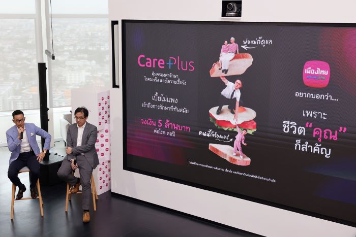 เมืองไทยประกันชีวิต พลัสความแคร์ให้คนที่แคร์แต่คนอื่น เปิดตัว “แคร์พลัส (Care Plus)” ความคุ้มครองค่ารักษาโรคมะเร็ง และไตวายเรื้อรัง ให้คุณคลายกังวลเรื่องค่ารักษาพยาบาลที่สูงและต่อเนื่อง ด้วยความคุ้มครองที่ครอบคลุมทั้ง IPD และ OPD วงเงินสูง 5 ล้านบาทต่อโรคต่อปี เลือกความคุ้มครองได้ตามต้องการค่าเบี้ยประกันภัยเข้าถึงได้ช่วยให้คุณเข้าถึงการรักษาด้วยนวัตกรรมแบบทันสมัย และช่วยเพิ่มโอกาสหายให้มากขึ้น