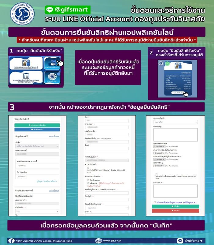ทั้งนี้ เพื่ออำนวยความสะดวกแก่ประชาชนที่อยู่ต่างจังหวัด หรือผู้ที่ไม่สามารถเดินทางมาด้วยตนเอง กปว. ได้จัดเตรียมช่องทางให้เจ้าหนี้สามารถยืนยันสิทธิได้ทางออนไลน์ 3 ช่องทาง ได้แก่