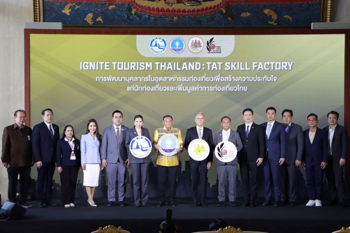 วันที่ 4 มิถุนายน 2567 กระทรวงการท่องเที่ยวและกีฬา โดย การท่องเที่ยวแห่งประเทศไทย (ททท.) ร่วมกับกระทรวงแรงงาน และสภาอุตสาหกรรมท่องเที่ยวแห่งประเทศไทย จัดงานแถลงข่าวเปิดกิจกรรม Ignite Tourism Thailand : TAT Skill Factory ซึ่งจะจัดขึ้นในวันที่ 15 – 16 มิถุนายน 2567 ณ โรงแรมแอมบาสซาเดอร์ กรุงเทพมหานคร ภายใต้นโยบาย “IGNITE TOURISM THAILAND”  มุ่งเสริมสร้างศักยภาพและทักษะต่าง ๆ แก่บุคลากรในอุตสาหกรรมท่องเที่ยวด้วยหัวใจสำคัญของการบริการที่เป็นเลิศ เพื่อสร้างความประทับใจและร่วมผลักดันประเทศไทยเป็น Tourism Hub จุดหมายปลายทางของนักท่องเที่ยวทั่วโลก โดยมีนายเสริมศักดิ์ พงษ์พานิช รัฐมนตรีว่าการกระทรวงการท่องเที่ยวและกีฬา นายพิพัฒน์ รัชกิจประการ รัฐมนตรีว่าการกระทรวงแรงงาน นายชำนาญ ศรีสวัสดิ์ ประธานสภาอุตสาหกรรมท่องเที่ยวแห่งประเทศไทย และนางสาวฐาปนีย์ เกียรติไพบูลย์ ผู้ว่าการ ททท. ให้เกียรติร่วมแถลงข่าว ณ ห้องโถงธนะรัชต์ อาคาร ททท. ซึ่งคาดว่ากิจกรรมดังกล่าวจะมีบุคลากรในอุตสาหกรรมการท่องเที่ยวในด้านต่าง ๆ เข้าร่วมงานไม่ต่ำกว่า 300 คน
