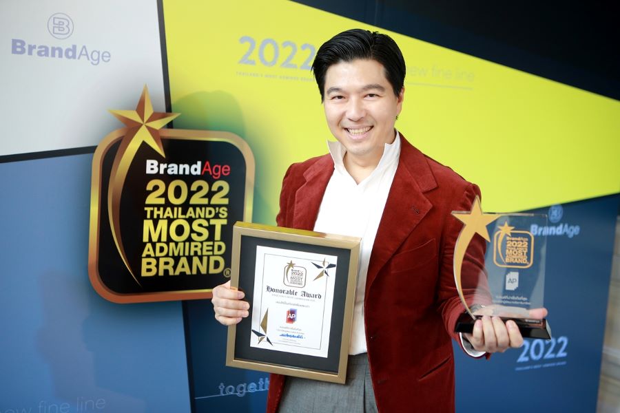 บริษัท เอพี (ไทยแลนด์) จำกัด (มหาชน) ประสบความสำเร็จครั้งสำคัญภายหลังการประกาศคำมั่นสัญญา (Brand Promise) “ชีวิตดีๆ ที่เลือกเองได้” ล่าสุดเอพี ไทยแลนด์ได้รับเลือกเป็นอันดับ 1 ของ “Thailand’s Most Admired Brand ประจำปี 2022 – ด้านแบรนด์อสังหาริมทรัพย์ที่คนไทยเชื่อถือที่สุด” โดยได้รับรางวัลอันทรงเกียรตินี้อย่างต่อเนื่องเป็นปีที่ 4 ยิ่งไปกว่านั้นเอพี ไทยแลนด์ยังได้ รับรางวัลอันทรงคุณค่ายิ่ง คือ “Brand Maker Award” สะท้อนการชื่นชมต่อภาพลักษณ์และจุดยืนอันโดดเด่นของเอพีที่มุ่งมั่นเอ็มพาวเวอร์สังคม โดยมาจากผลสำรวจของผู้บริโภคทั่วประเทศและนักการตลาดที่มีการรับรู้ต่อแบรนด์ โดยมีนายสรรพสิทธิ์  ฟุ้งเฟื่องเชวง ผู้อำนวยการอาวุโส ฝ่ายงานกลยุทธ์แบรนด์องค์กร เป็นตัวแทนรับมอบ ณ โรงแรมพูลแมน คิงเพาเวอร์ กรุงเทพฯ