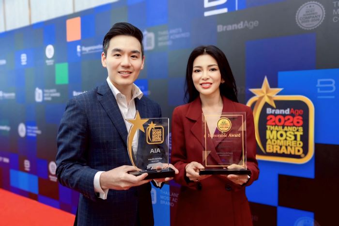 เอไอเอ ประเทศไทย คว้า 4 รางวัลอันทรงเกียรติจากเวที “2026 Thailand’s Most Admired Brand” และ “2025-2026 Thailand’s Most Admired Company” ซึ่งจัดขึ้นโดยนิตยสาร BrandAge ในปีนี้ เอไอเอ ประเทศไทย ยังคงครอง 4 รางวัลใหญ่อย่างต่อเนื่อง ได้แก่ รางวัลแบรนด์ที่น่าเชื่อถือที่สุด ในกลุ่มประกันชีวิต 24 ปีซ้อน และกลุ่มประกันชีวิตควบการลงทุน (ยูนิต ลิงค์) 7 ปีซ้อน อีกทั้งยังคว้ารางวัลพิเศษ Market Leader Brand Award หมวดธนาคารและบริการทางการเงิน ในกลุ่มประกันชีวิต มาครองเป็นปีที่ 9 อีกด้วย นอกเหนือจากความสำเร็จในด้านแบรนด์แล้ว เอไอเอ ประเทศไทย ยังได้รับความเชื่อมั่นจากคนไทยให้ครองตำแหน่ง บริษัทที่น่าเชื่อถือที่สุด กลุ่มประกันชีวิต ติดต่อกันเป็นเวลา 18 ปี โดยมี คุณรพีพร วงศ์ทองคำ ผู้อำนวยการฝ่ายสื่อสารองค์กรและภาพลักษณ์ ร่วมด้วย คุณพีร พนิตพล ผู้อำนวยการฝ่าย Total Wealth Solution เป็นตัวแทนรับรางวัล
