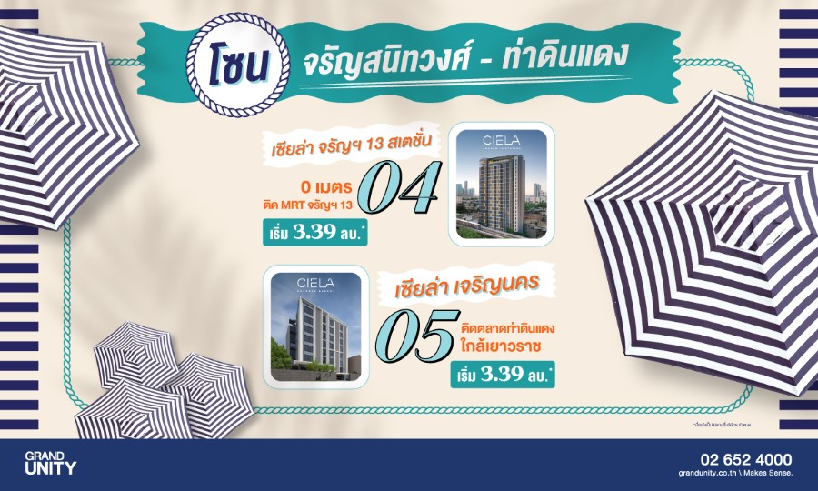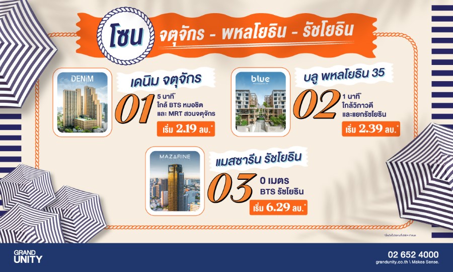 แกรนด์ ยูนิตี้ เดินหน้ารุกตลาดอสังหาฯ ปี’ 68 อย่างต่อเนื่อง นำทัพ 10 คอนโดมิเนียมพร้อมอยู่บนทำเลศักยภาพทั่วทั้งกรุงเทพฯ ร่วมออกบูธใน “งานมหกรรมบ้านและคอนโด ครั้งที่ 47” พร้อมจัดโปรโมชั่นสุดพิเศษ “GRAND UNITY SUMMER VIBES ดีลร้อน พร้อมเสิร์ฟ” เพียงจองภายในงานลุ้นรับเงิน 100,000 บาท ทุกวัน*, ฟรี เครื่องใช้ไฟฟ้ารวม 40 รายการ*, ฟรี เฟอร์นิเจอร์* และ VACATION PACKAGE มูลค่าสูงสุด 100,000 บาท* เริ่มเพียง 2.19 ล้านบาท* พบกันได้ที่บูธ 253 – 257 และ 282 – 288 ฮอลล์ 5 ณ ศูนย์การประชุมแห่งชาติสิริกิติ์ วันที่ 20 – 23 มีนาคมนี้ เท่านั้น