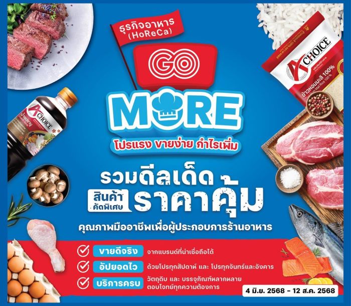 โก โฮลเซลล์ (GO WHOLESALE) ผุดกิจกรรมดีๆ เพื่อผู้ประกอบการร้านอาหารและกลุ่มโฮเรก้า ผ่านแคมเปญ “HoReCa GO More โปรแรง ขายง่าย กำไรงาม” ที่จะหมุนเวียนจัดในทุกสาขาทั่วประเทศ โดยจะมีสิทธิประโยชน์พิเศษเอาใจธุรกิจร้านอาหารที่กำลังต้องการ “ตัวช่วย” ไม่ว่าจะเป็น การมัดรวมดีลเด็ด ลดสูงสุด 50% Cooking Show จากเซเลบริตี้เชฟชื่อดัง บูทชงชิมวัตถุดิบตัวตึงที่พลาดไม่ได้จากแบรนด์ดังและ A CHOICE ที่สำคัญ มีกิจกรรมเวิร์กชอปถึง 60 คอร์ส โดย 40 เชฟมืออาชีพจากสมาคมสมาพันธ์เชฟประเทศไทย ให้เก็บเกี่ยวความรู้พร้อมลงมือปรุงสูตรเด็ดเคล็ดลับเมนูทำเงินในธีมยอดนิยม อาทิ ไทยฟิวชั่น เมนูเส้น ไทยอีสาน สตรีทฟู้ด และชาบูหมูกะทะ