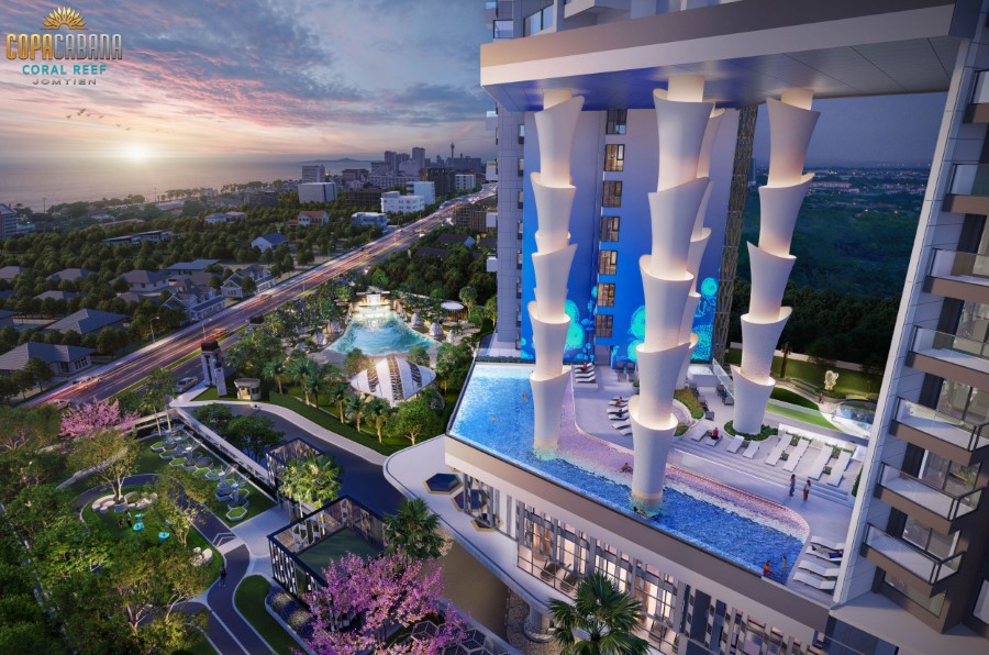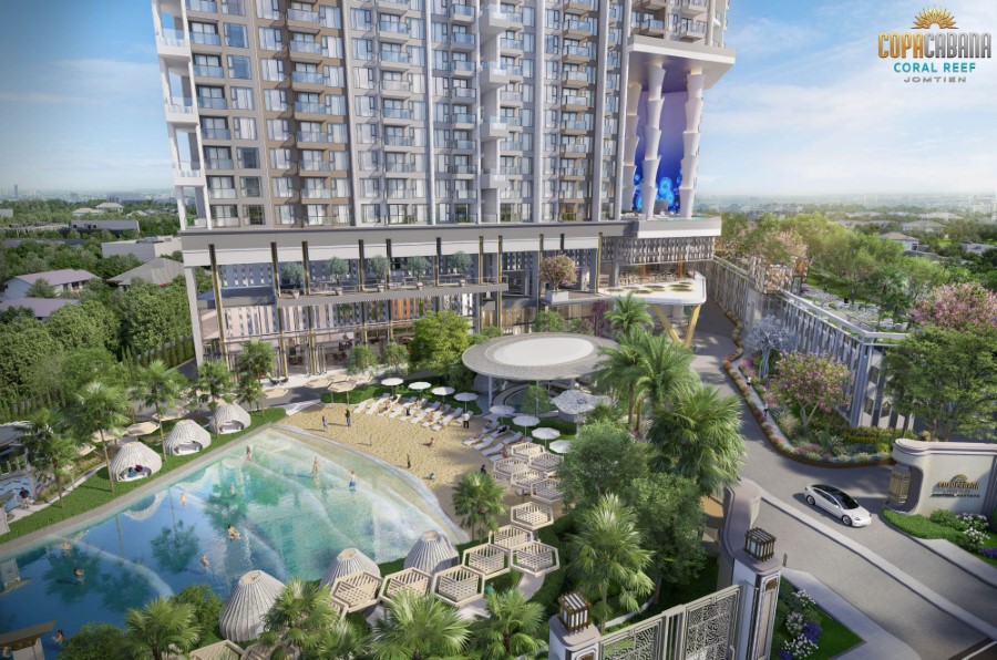 ด้วยความมุ่งมั่น ความซื่อสัตย์ และความจริงใจ เพื่อมอบประสบการณ์การอยู่อาศัยที่มีคุณภาพสูงสุดให้กับลูกค้า โคปาคาบาน่า กรุ๊ป ต่อยอดความสำเร็จเปิดโครงการแห่งที่สองในทำเลใกล้ๆ กับโครงการแรก ตอกย้ำอาณาจักรแบรนด์ โคปาคาบาน่า กรุ๊ป ในชื่อโครงการ โคปาคาบาน่า คอรัล รีฟ จอมเทียน (Copacabana Coral Reef Jomtien) เป็นคอนโดฯ High Rise Residential สไตล์โมเดิร์นตอบโจทย์ทุก Generation ในราคาเริ่มต้น 3.6 ล้านบาท* เฉลี่ยตารางเมตรที่ 90,000 บาท มาในคอนเซ็ปต์ “อัญมณีแห่งท้องทะเล (The Jewels of The Sea)” เพียบพร้อมด้วยสิ่งอำนวยความสะดวกที่ครบครัน ทันสมัย และการบริการระดับโรงแรม 5 ดาว บนเนื้อที่กว่า 13 ไร่ครึ่ง ทำเลที่ตั้งใกล้หาดจอมเทียนเพียงแค่ 4 นาทีเป็นอาคารสูง 55 ชั้น มีห้องชุดพักอาศัยจำนวน 1,897 ยูนิต จอดรถ 5 ชั้น และอาคารจอดรถเสริม 2 ชั้น มูลค่าโครงการกว่า 11,000 ล้านบาท เปิดตัวเมื่อเดือนตุลาคม 2567 เปิดขายเพียง 8 เดือน มียอดขายกว่า 700 ยูนิต ลูกค้าต่างชาติเริ่มกลับมามากขึ้นเห็นได้จากยอดขาย 2 ใน 3 ของยูนิตที่ขายได้เป็นชาวไทย 15% ชาวต่างชาติ 25% เป็นลูกค้าจากยุโรป รัสเซีย อเมริกา และแคนาดา เป็นต้น ส่วนที่เหลือเจาะตลาดลูกค้าคนไทย คาดว่าจะขายได้หมดก่อนที่จะก่อสร้างเสร็จ