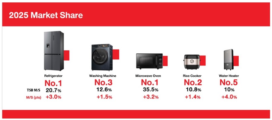 โตชิบา ไทยแลนด์ เผยผลการดำเนินงานปี 2568 โตเกินคาด 22% ทะลุเพดานตลาด และโตต่อเนื่องเป็นปีที่ 6 สะท้อนความแข็งแกร่งของแบรนด์ พร้อมประกาศทิศทาง ปี 2569 ตั้งเป้าเติบโตกว่า 30% และมุ่งสู่การเป็นแบรนด์เครื่องใช้ไฟฟ้าอันดับ 1 ในประเทศไทย
