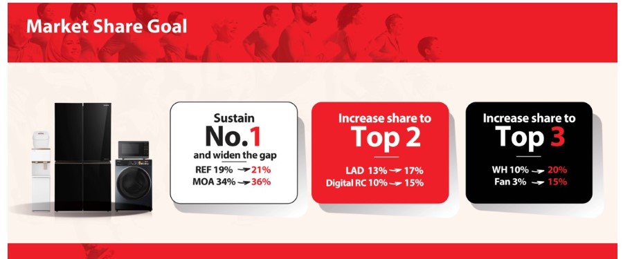 “สำหรับโตชิบา ไทยแลนด์ ปีนี้ เราตั้งเป้าเป็นเบอร์ 1 ในตลาดเครื่องใช้ไฟฟ้า โดยมุ่งหวังรักษาตำแหน่งแชมป์ ยอดขายอันดับ 1 และเพิ่มสัดส่วนการตลาดมากขึ้น