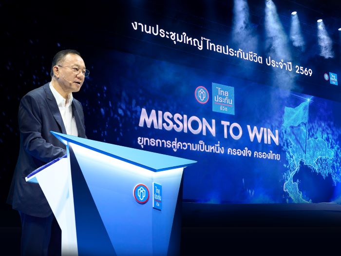 พลเอกวินัย ภัททิยกุล ประธานกรรมการ บริษัท ไทยประกันชีวิต จำกัด (มหาชน) และ นายฮิเดกิ นากาจิมะ Director, President, Representative Executive Officer, and Group CEO บริษัท เมจิ ยาสุดะ ไลฟ์อินชัวรันส์ ร่วมเปิดงานประชุมใหญ่ ประจำปี 2569 ภายใต้แนวคิด “MISSION TO WIN” ยุทธการสู่ความเป็นหนึ่ง ครองใจ ครองไทย เพื่อประกาศนโยบายก้าวสู่ความเป็นหนึ่งของไทยประกันชีวิต พร้อมมอบเป้าหมายการดำเนินงานให้แก่บุคลากรฝ่ายขายทั่วประเทศ โดยมีคณะผู้บริหารระดับสูง จาก บมจ.ไทยประกันชีวิต และบริษัท เมจิ ยาสุดะ ไลฟ์อินชัวรันส์ ร่วมงาน ณ ศูนย์แสดงสินค้าอิมแพ็ค เมืองทองธานี