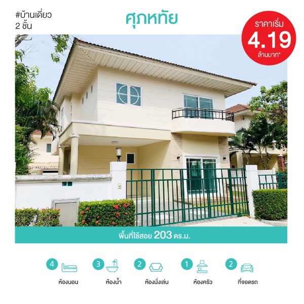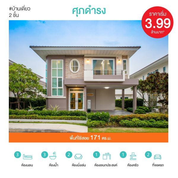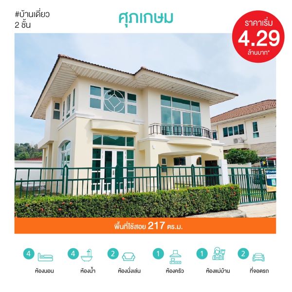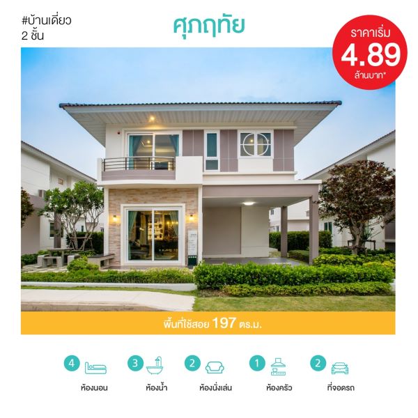 สัมผัสปาร์ตี้สุดฟินพร้อมขนมและเครื่องดื่มตลอดงาน ชวนลูกค้าเข้าชมโครงการและบ้านตัวอย่างที่เลือกสรรมาเพื่อครอบครัวที่สมบูรณ์แบบเหนือระดับ ทั้งบ้านเดี่ยวชั้นเดียวและบ้านเดี่ยว 2 ชั้น พื้นที่ใช้สอย 125 – 233 ตารางเมตร เริ่ม 2.89 ล้านบาท* มาพร้อมการออกแบบบ้านที่ลงตัวและประหยัดพลังงาน เติมเต็มด้วยสิ่งอำนวยความสะดวกภายในโครงการ ทั้งสวนส่วนกลางถึง 2 แห่งในโครงการ ลานออกกำลังกาย ฟิตเนส และสระว่ายน้ำ ตอบสนองทุกการเดินทางบนทำเลที่เหนือกว่าใกล้แยกท่ากูบ อยากเป็นคนที่โดนจอง เราจัดเต็มแบบไม่กั๊ก!! ทั้งส่วนลดและของแถม* รับฟรี!! Samsung Galaxy S23 Ultra (6.1”) มูลค่า 32,100 บาท* ค่าใช้จ่ายวันโอนฯ ค่ามิเตอร์น้ำ – ไฟ ส่วนลดเพิ่ม เครื่องปรับอากาศ มุ้งลวดหน้าต่างสไตล์โมเดิร์นทั้งหลัง ปั๊มน้ำและถังเก็บน้ำ จัดสวนตามมาตรฐานบริษัท และกู้ไม่ผ่านยินดีคืนเงิน* ตั้งแต่วันที่ 1 – 2 เม.ย. 66