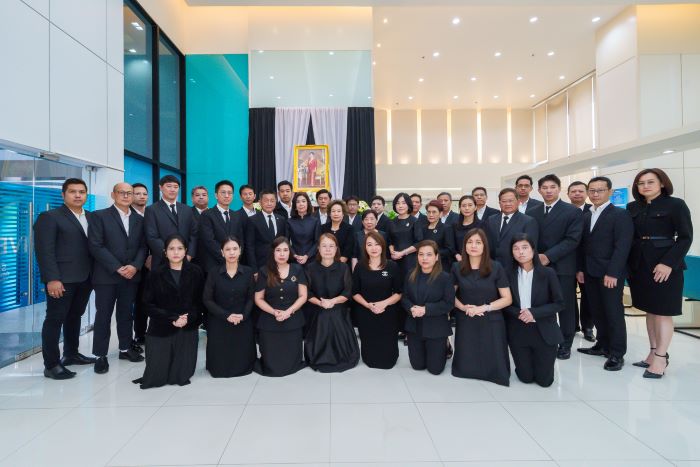บมจ.ไทยสมุทรประกันชีวิต รักคือพลังของชีวิต โดยคุณนุสรา (อัสสกุล) บัญญัติปิยพจน์ ประธานเจ้าหน้าที่บริหารและกรรมการผู้จัดการ (CEO) พร้อมด้วยคณะกรรมการ ผู้บริหาร และพนักงาน จัดพิธีน้อมถวายความอาลัยเบื้องหน้าพระฉายาลักษณ์ สมเด็จพระนางเจ้าสิริกิติ์ พระบรมราชินีนาถ พระบรมราชชนนีพันปีหลวง ณ อาคารโอเชี่ยนทาวเวอร์ 1 ในวันศุกร์ที่ 31 ตุลาคม 2568