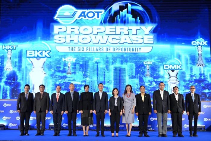 บริษัท ท่าอากาศยานไทย จำกัด (มหาชน) (AOT) จัดงาน “AOT Property Showcase: The Six Pillars of Opportunity” ระเบิดศักยภาพพื้นที่ทำเลทองรอบสนามบิน 6 แห่งทั่วประเทศ ปักธงพัฒนาเมืองการบินดึงภาคเอกชนร่วมปั้นศูนย์กลางเศรษฐกิจใหม่ รวม 2,512 ไร่ เม็ดเงินลงทุนมูลค่า 28,800 ล้านบาท ขานรับการขับเคลื่อนประเทศไทยสู่การเป็น Aviation Hub แห่งภูมิภาค โดยมีนายยงยุทธ ชัยพรหมประสิทธิ์ กรรมการอิสระ ประธานกรรมการบริหารความเสี่ยง AOT นางสาวไตรทิพย์ ศิวะกฤษณ์กุล กรรมการ AOT และ น.ส.ปวีณา จริยฐิติพงศ์ รองกรรมการผู้อำนวยการใหญ่ (สายงานวิศวกรรมและการก่อสร้าง) รักษาการผู้อำนวยการใหญ่ AOT ร่วมเป็นประธานในการเปิดงานฯ ณ Mövenpick BDMS Wellness Resort Bangkok