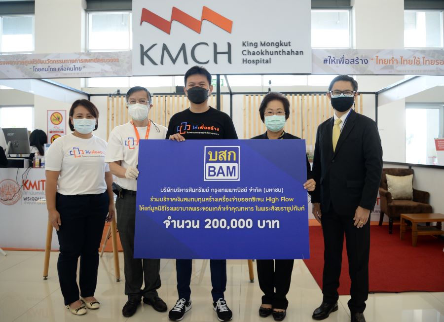 นางสาววิไล ตันตินันท์ธนา ประธานคณะกรรมการกำกับดูแลกิจการที่ดีและความรับผิดชอบต่อสังคม และนายวีรเวช ศิริชาติไชย รองผู้จัดการใหญ่ บริษัทบริหารสินทรัพย์ กรุงเทพพาณิชย์ จำกัด (มหาชน) หรือ BAM มอบเงินจำนวน 200,000 บาท เพื่อสมทบทุนสร้างเครื่องจ่ายออกซิเจน High Flow พร้อมระบบมอนิเตอร์ทางไกล ให้แก่โรงพยาบาลพระจอมเกล้าเจ้าคุณทหาร เพื่อช่วยเหลือผู้ป่วยวิกฤตเพิ่มระดับออกซิเจน โดยมี ศาสตราจารย์ ดร.สุชัชวีร์ สุวรรณสวัสดิ์ อธิการบดี สถาบันเทคโนโลยีพระจอมเกล้าเจ้าคุณทหารลาดกระบัง เป็นผู้รับมอบ ณ อาคารหอประชุมเจ้าพระยาสุรวงษ์ไวยวัฒน์ (วร บุนนาค) สถาบันเทคโนโลยีพระจอมเกล้าเจ้าคุณทหารลาดกระบัง