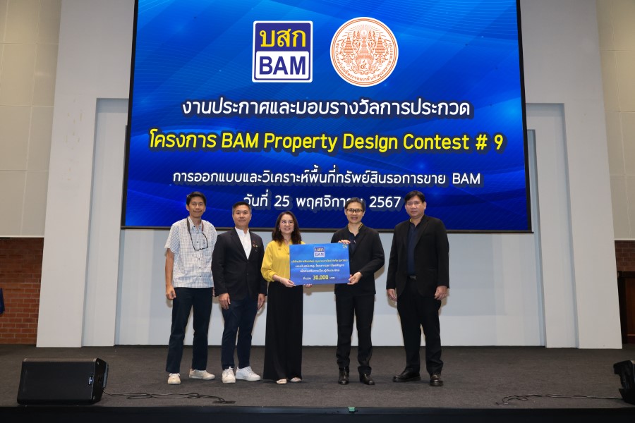 บริษัทบริหารสินทรัพย์ กรุงเทพพาณิชย์ จำกัด (มหาชน) หรือ BAM ร่วมกับ คณะสถาปัตยกรรม ศิลปะและการออกแบบ สถาบันเทคโนโลยีพระจอมเกล้าเจ้าคุณทหารลาดกระบัง จัดโครงการ BAM Property Design Contest ต่อเนื่องเป็นปีที่ 9 โดยปีนี้ จัดประกวดภายใต้แนวคิด : ออกแบบและวิเคราะห์พื้นที่ ทรัพย์สินรอการขาย BAM เพื่อเปิดโอกาสให้นักศึกษาได้แสดงความรู้ ความสามารถ และความคิดสร้างสรรค์ผ่านผลงานที่มุ่งเน้นการออกแบบให้มีความโดดเด่น สวยงาม ผสมผสานเทคโนโลยีสมัยใหม่ สามารถนำไปประยุกต์ใช้ในทรัพย์สินรอการขายของ BAM โดยนักศึกษาที่ได้รับการคัดเลือกชนะการประกวดทั้ง 11 รางวัล ได้รับมอบทุนการศึกษาและประกาศนียบัตร จาก นายวีรเวช ศิริชาติไชย รองประธานเจ้าหน้าที่บริหาร BAM รวมเป็นเงินทั้งสิ้น 100,000 บาท รวมทั้งมอบเงินสนับสนุนโครงการสถาปัตย์สัญจร จำนวน 30,000 บาท เพื่อส่งเสริมการเรียนรู้เชิงประจักษ์ โดยมี ผศ.ดร.อันธิกา สวัสดิ์ศรี คณบดีคณะสถาปัตยกรรรม ศิลปะและการออกแบบ คณาจารย์ภาควิชาฯ และผู้บริหาร พนักงาน BAM เข้าร่วมงาน ณ ห้องประชุมศาสตราจารย์ประสม รังสิโรจน อาคารเรียนรวม คณะสถาปัตยกรรม ศิลปะและการออกแบบ สถาบันเทคโนโลยีพระจอมเกล้าเจ้าคุณทหารลาดกระบัง