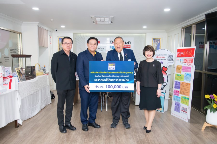 คุณสมพร มูลศรีแก้ว ผู้จัดการใหญ่ สายธุรกิจ คุณวุฒิพงศ์ บุญยะสิทธิ์ ผู้ช่วยประธานเจ้าหน้าที่บริหาร สายพัฒนาสินทรัพย์ภูมิภาค 2 บริษัทบริหารสินทรัพย์ กรุงเทพพาณิชย์ จำกัด (มหาชน) หรือ BAM มอบเงินสมทบโครงการปันน้ำใจช่วยเหลือผู้ประสบอุทกภัยในพื้นที่ภาคใต้ ให้กับสภากาชาดไทย จำนวน 100,000 บาท โดยมีคุณขรรค์ ประจวบเหมาะ ผู้อำนวยการสำนักงานจัดหารายได และคุณจันทร์ประภา วิชิตชลชัย รองผู้อำนวยการสำนักงานจัดหารายได้ เป็นผู้แทนรับมอบ ณ สำนักงานจัดหารายได้ สภากาชาดไทย … BAM ขอเป็นกำลังใจให้ทุกคนก้าวผ่านช่วงวิกฤตนี้ไปด้วยกันและพร้อมเคียงข้างสังคมไทยในทุกช่วงเวลา