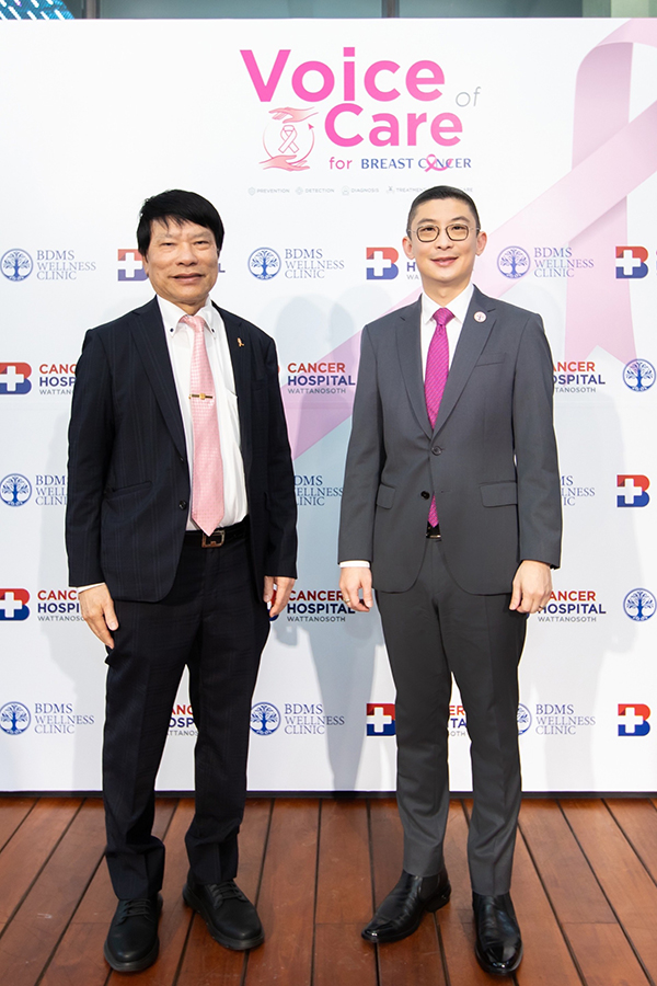 “BDMS Wellness Clinic มุ่งมั่นเป็นส่วนหนึ่งในการลดอัตราการเกิดโรคมะเร็งเต้านม ในปีนี้ เราจึงร่วมมือกับโรงพยาบาลมะเร็งกรุงเทพ วัฒโนสถ จัดงาน Voice of Care for Breast Cancer เพื่อมอบความตระหนักรู้เกี่ยวกับการป้องกันการเกิดโรคมะเร็งให้กับทุกคน ตลอดจนส่งมอบบริการการดูแลผู้ป่วยมะเร็งเต้านมครบวงจรในทุกมิติ ตั้งแต่การป้องกัน การตรวจคัดกรอง การวินิจฉัย การรักษา ไปจนถึงการฟื้นฟูดูแลผู้ป่วยหลังการรักษา ซึ่งเป็นส่วนหนึ่งของ Cancer Wellness ด้วยโปรแกรม Breast Cancer Healing มุ่งมั่นที่จะยกระดับคุณภาพชีวิตให้ผู้ป่วยสามารถกลับมาใช้ชีวิตได้อย่างมีคุณภาพที่สุด”