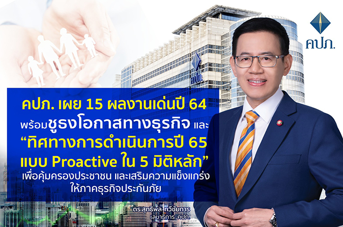 คปภ. โชว์ 15 ผลงานเด่นปี 64 ชูโอกาสทางธุรกิจ-ทิศทาง ปี 65 Proactive 5 มิติหลัก คุ้มครองประชาชน-เสริมความแข็งแกร่งให้ภาคธุรกิจประกันภัย