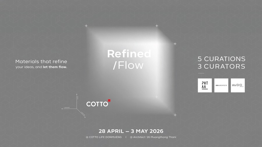 COTTO จึงชวนทุกท่านมาเปิดมุมมองใหม่ในการเลือก ‘วัสดุตกแต่ง’ สู่ ‘งานออกแบบ’ ผ่านไอเดีย “5 CURATIONS” เพื่อให้นักออกแบบเลือกใช้วัสดุได้ง่ายขึ้นอย่างเป็นระบบ โดยปีนี้ยังได้ “3 CURATORS” หรือ 3 สถาปนิกชั้นนำอย่าง PHTAA, IDIN ARCHITECTS และ Stu/D/O Architects มาร่วมตีโจทย์ในการออกแบบพื้นที่จริง ภายใต้แนวคิด “REFINED / FLOW” สะท้อนการเชื่อมโยง “วัสดุ” ที่ไหลลื่นไปกับ “การออกแบบ” ได้อย่างมีมิติ สวยงาม และใช้งานได้จริง โดยครอบคลุมสินค้าทั้งกลุ่ม วัสดุปิดผิวหลากหลายประเภท และ กลุ่มสุขภัณฑ์และอุปกรณ์ตกแต่งภายในห้องน้ำ ซึ่งจะจัดแสดง 2 พื้นที่ ได้แก่ งานสถาปนิก’69 ณ อิมแพ็ค ชาเลนเจอร์ เมืองทองธานี และ COTTO LiFE ดอนเมือง ระหว่างวันที่ 28 เมษายน – 3 พฤษภาคม 2569