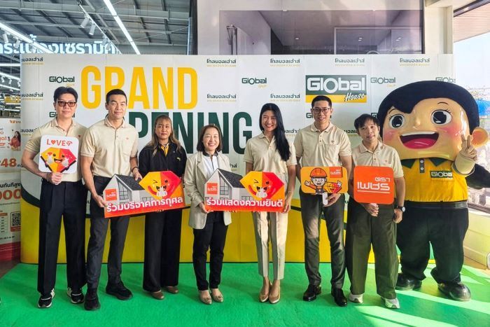 ดร. พิชญานันท์ ล้อวรลักษณ์ (ที่ 5 จากซ้าย) ผู้ช่วยประธานเจ้าหน้าที่บริหารสายการขายและการตลาด บริษัทผลิตภัณฑ์ตราเพชร จำกัด (มหาชน) หรือ DRT ร่วมแสดงความยินดีกับ นางสาว อาพันธ์ชนิตถ์ เพชรวงศ์ (ที่ 4 จากซ้าย) ผู้ช่วยรองประธานเจ้าหน้าที่บริหาร บริษัท สยามโกลบอลเฮ้าส์ จำกัด (มหาชน) ผู้บริหารศูนย์รวมสินค้าวัสดุก่อสร้างและตกแต่งบ้านครบวงจร ในโอกาสเปิดบริการโกลบอลเฮ้าส์ สาขาสมเด็จ จังหวัดกาฬสินธุ์ อย่างเป็นทางการ ซึ่งเป็นสาขาลำดับที่ 95 เพื่อขยายตลาดในพื้นที่ภาคตะวันออกเฉียงเหนือตอนกลางและตอนบน รวมถึงรองรับความต้องการใช้สินค้าวัสดุก่อสร้างและตกแต่งในจังหวัดกาฬสินธุ์ ซึ่งเป็นหนึ่งในจังหวัดเศรษฐกิจที่สำคัญ พร้อมร่วมบริจาคเพื่อสาธารณกุศล