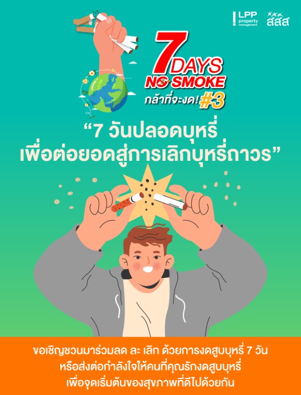 นางสาวสมศรี เตชะไกรศรี กรรมการผู้จัดการ บริษัท แอล พี พี พรอพเพอร์ตี้ มาเนจเมนท์ จำกัด หรือ LPP กล่าวว่า “ในฐานะผู้ดำเนินธุรกิจบริหารจัดการโครงการอสังหาริมทรัพย์ครบวงจร เราตระหนักถึงบทบาทสำคัญในการสร้างสรรค์ชุมชนให้น่าอยู่ ปลอดภัย และเอื้อต่อการใช้ชีวิตของทุกคน ทั้งในด้านสิ่งแวดล้อม สังคม และสุขภาพของทุกคนในพื้นที่ที่ LPP ดูแล เราจึงได้ริเริ่มกิจกรรม “7 Days No Smoke กล้าที่จะงด” ซึ่ง จัดขึ้นอย่างต่อเนื่องปีนี้เป็นปีที่ 3 รณรงค์ระหว่างวันที่ 31 พฤษภาคม – 6 มิถุนายน 2568 ในโครงการที่อยู่ภายใต้การบริหารจัดการของ LPP กว่า 250 โครงการ มีจำนวนผู้อยู่อาศัยกว่า 400,000 ราย และพนักงานในกลุ่ม LPP อีกกว่า 3,000 คน ได้ร่วมแสดงพลังในการรณรงค์งดสูบบุหรี่ 7 วัน โดยมีเป้าหมายเพื่อจุดประกายการเลิกบุหรี่ และสร้างแรงบันดาลใจผ่านการลงมือทำจริงในชีวิตประจำวัน ซึ่งถือเป็นจุดเริ่มต้นของการเปลี่ยนแปลงสู่ชีวิตที่ดีขึ้นของทั้งตนเอง ครอบครัว ชุมชน และสังคมได้”