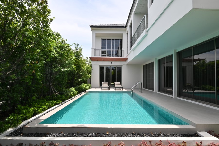 พร้อมเปิดบ้านโซนใหม่ พูลวิลล่า ที่ยังคงคอนเซปต์การออกแบบเน้นพื้นที่ใช้สอยขนาดใหญ่ ใกล้ชิดธรรมชาติ ด้วยการออกแบบบ้านดีไซน์ L-Shape ให้ความรู้สึกเหมือนรีสอร์ต และวางผังแปลน Open Plan ให้มีพื้นที่เชื่อมต่อกันระหว่างพื้นที่นั่งเล่นและพื้นที่รับประทานอาหารเพื่อเป็นสเปซไว้ต้อนรับทั้งแขกที่มาเยือนและสมาชิกในครอบครัวได้ทำกิจกรรมร่วมกัน นอกจากนี้ยังสามารถ เชื่อมต่อกันไปยังพื้นที่ภายนอกโซนพูลวิลล่า