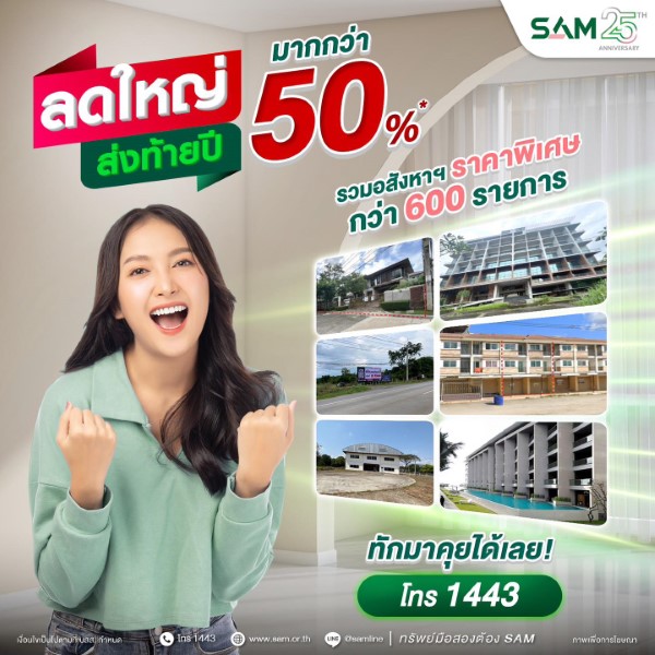 สอบถามรายละเอียดเพิ่มเติมได้ที่ Call Center 1443  และดูรายละเอียดทรัพย์สินได้ทางเว็บไซต์ที่ www.sam.or.th  รวมทั้งช่องทางออนไลน์ที่หลากหลายและสะดวกรวดเร็ว โดยแอด ID Line @Samline ติดตาม Facebook /YouTube / TikTok ได้ที่  “SAM บริหารสินทรัพย์สุขุมวิท” เพื่อติดตามข้อมูลข่าวสารดี ๆ จาก SAM