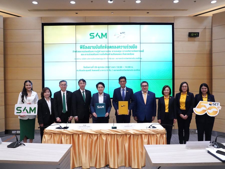 นางสาวนารถนารี รัฐปัตย์ กรรมการผู้จัดการ บริษัท บริหารสินทรัพย์สุขุมวิท จำกัด (บสส.) หรือ SAM เปิดเผยว่า การลงนาม MOU ในครั้งนี้ เป็นการสานต่อความร่วมมือกับ ตลท.ในระยะที่ 2 (2567-2569) ต่อเนื่องไปอีก 2 ปี หลังจากความร่วมมือในระยะที่ 1 (2565-2567) ในช่วงที่ผ่านมานั้น ประสบความสำเร็จเป็นอย่างดี SAM และ ตลท. มีเป้าหมายร่วมกัน คือ เพื่อยกระดับและส่งเสริมความรู้ความเข้าใจด้านการเงิน การลงทุน การบริหารจัดการหนี้ รวมถึงส่งเสริมทักษะการเป็นผู้ประกอบการและความรู้ด้านความยั่งยืน ทั้งมิติสังคมและสิ่งแวดล้อม ให้แก่ประชาชนทั่วไป ผู้ใช้บริการ บุคลากร และ ลูกค้าของ SAM ความรู้ทางการเงินด้านต่างๆ ที่ SAM ได้รับมามีส่วนสำคัญที่ช่วยให้ SAM สามารถขยายการทำงานให้ครอบคลุมกลุ่มเป้าหมายได้อย่างเป็นรูปธรรมมากยิ่งขึ้น โดยเฉพาะลูกค้าของ “โครงการคลินิกแก้หนี้ by SAM” ได้มีความรู้และชีวิตทางการเงินที่ดีขึ้น โดยครอบคลุมถึงทักษะและความรู้ทางการเงิน การลงทุน และการบริหารจัดการหนี้ในระดับพื้นฐานที่จำเป็น เริ่มตั้งแต่การหารายได้ การออม การลงทุน การจัดทำงบประมาณรายรับรายจ่าย การวางแผนทางการเงิน การวางแผนการลงทุน และการวางแผนการออม ซึ่งจะส่งผลให้เกิดการวางแผนและบริหารจัดการทางการเงิน การลงทุนและการจัดการหนี้สิน ในระดับครัวเรือนของกลุ่มเป้าหมายเป็นไปอย่างมีประสิทธิภาพและประสิทธิผลมากขึ้น นับว่าเป็นโครงการที่สอดคล้องกับนโยบายเร่งด่วนของรัฐบาลในขณะนี้ที่จะช่วยลดปัญหาหนี้ครัวเรือนของประเทศเพื่อความยั่งยืนต่อเศรษฐกิจในระยะยาว