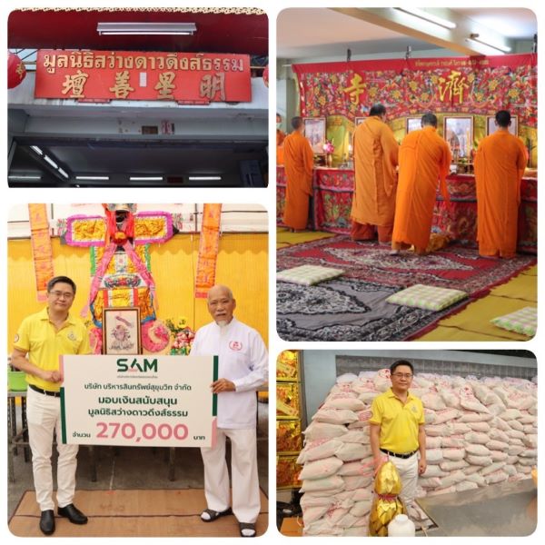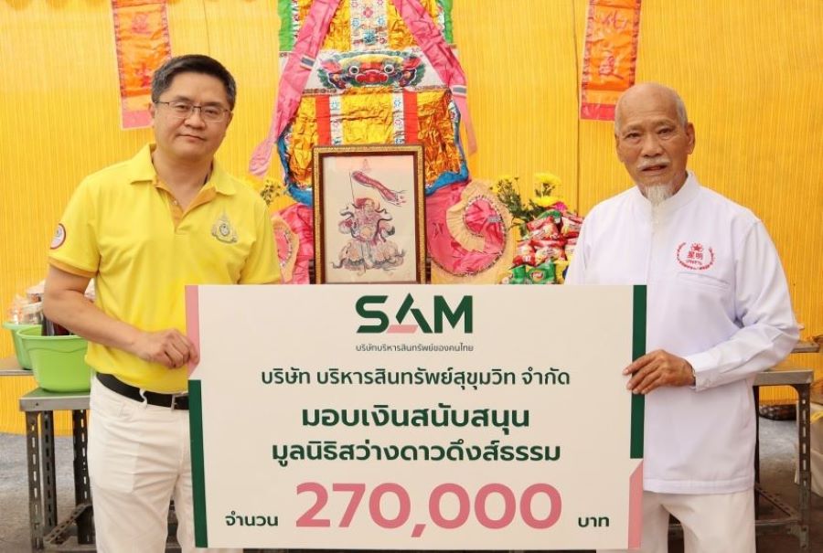 บริษัท บริหารสินทรัพย์สุขุมวิท จำกัด (บสส.) หรือ SAM โดยนายธรัฐพร เตชะกิจขจร กรรมการผู้จัดการ มอบเงินบริจาคสาธารณกุศลให้กับมูลนิธิสว่างดาวดึงส์ธรรม จำนวน 270,000 บาท โดยมีนายวิชัย ชูชัยเจริญ ประธานมูลนิธิสว่างดาวดึงส์ธรรม เป็นผู้รับมอบ เพื่อสนับสนุนกิจกรรมของมูลนิธิฯ ในการซื้อโลงศพสำหรับศพไร้ญาติ และซื้อข้าวสาร อาหารแห้ง เครื่องอุปโภค บริโภคแก่ผู้ด้อยโอกาส (งานทิ้งกระจาด) ซึ่งมูลนิธิสว่างดาวดึงส์ธรรม เป็นองค์กรสาธารณกุศลที่จัดตั้งขึ้นเพื่อบำเพ็ญประโยชน์และช่วยเหลือสังคม