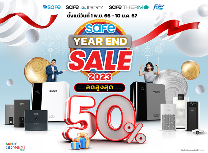 บริษัท สบาย คอนเน็กซ์ เทค จำกัด (มหาชน) หรือ SBNEXT ฉลองส่งท้ายปีเก่าต้อนรับปีใหม่ จัดแคมเปญสุดพิเศษ “SAFE YEAR END SALE 2023” ยกทัพสินค้าแบรนด์เซฟทั้งขบวน มาลดราคาสูงสุด 50 % อาทิ เครื่องกรองน้ำ เครื่องทำน้ำอุ่น เครื่องฟอกอากาศ และไส้กรองมาตรฐาน ที่ใช้ได้กับเครื่องกรองน้ำทุกรุ่น ทุกยี่ห้อ พร้อมสินค้าอื่นๆ ที่ร่วมรายการอีกมากมาย