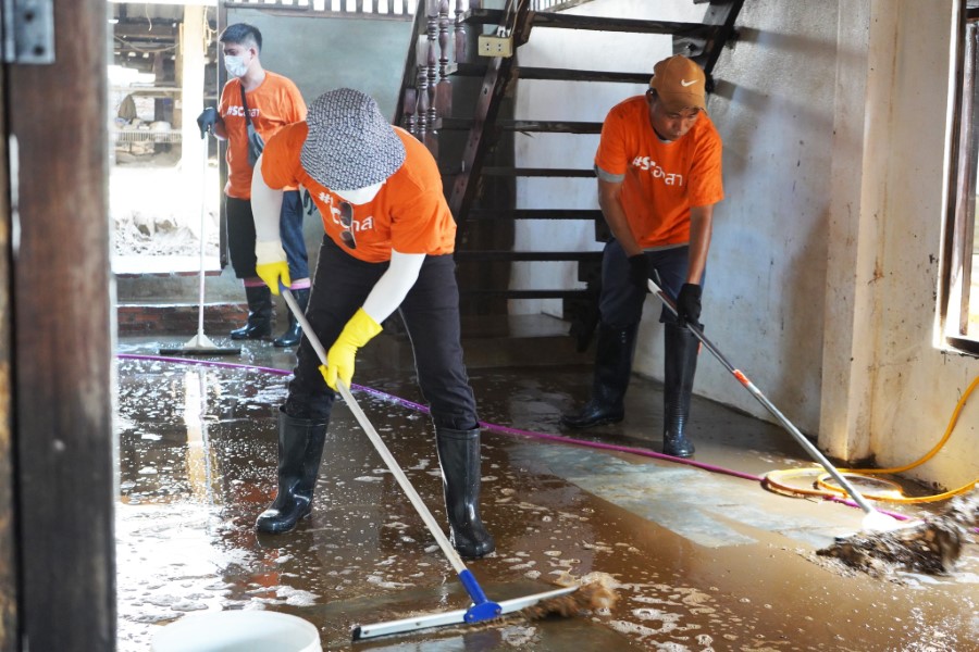 โดยล่าสุด SC ส่งทีม #SCอาสา และทีมอาสาสมัครภายใต้มูลนิธิกระจกเงา ช่วยกันลำเลียงสิ่งของบริจาคจากโกดังจัดเก็บสินค้าของ SC สู่อำเภอเมือง จังหวัดเชียงราย พร้อมลงพื้นที่ทำภารกิจ พบปะผู้ประสบอุทกภัยเพื่อสำรวจความต้องการจริง โดยเฉพาะกลุ่มเปราะบาง เช่น ผู้สูงอายุ ผู้ทุพพลภาพ และผู้ป่วย ที่ต้องการความช่วยเหลือเร่งด่วนให้มีที่พักพิงอาศัยอย่างเหมาะสม พร้อมร่วมทำภารกิจฟื้นฟูสถานที่ ล้างดินโคลนที่ทับถม และแทรกอยู่ในทุกอนูของบ้าน เพื่อเตรียมสำหรับการซ่อมแซมในส่วนที่ชำรุดจนไม่สามารถใช้งานได้