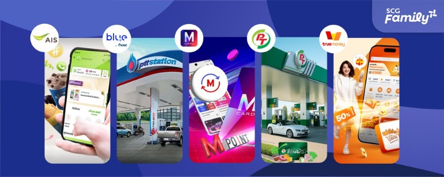 นอกจากนี้ SCG Family Plus+ ยังเป็นโปรแกรมที่เปิดกว้างสู่ความร่วมมือกับพันธมิตรแบรนด์ไทยชั้นนำ ได้แก่ AIS, blueplus+, The Mall Group, PTG และ TrueMoney เพื่อมอบสิทธิพิเศษที่หลากหลาย ครอบคลุมทั้งการเดินทางช้อปปิ้ง การสื่อสาร และพลังงาน