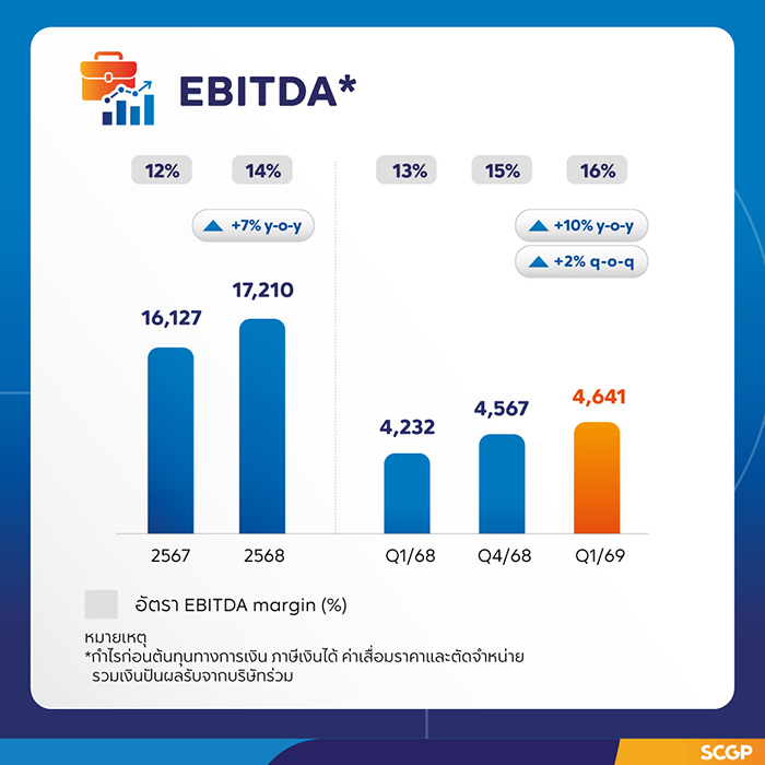 SCGP ประกาศผลประกอบการไตรมาสที่ 1 ปี 2569 กำไรเติบโต จากธุรกิจในอินโดนีเซียที่ฟื้นตัวจากการเพิ่มประสิทธิภาพการดำเนินงานและลดต้นทุน และจากแรงหนุนของการอุปโภคบริโภคในประเทศกลุ่มอาเซียน วางกลยุทธ์เชิงรุกต่อเนื่องในไตรมาสที่ 2 รับมือความผันผวนของเศรษฐกิจโลก เดินหน้าบริหารความต่อเนื่องทางธุรกิจ ควบคู่กับการเพิ่มประสิทธิภาพการผลิตและการปรับการใช้พลังงานอย่างเหมาะสม รวมถึงการนำเสนอโซลูชันเพื่อตอบโจทย์ลูกค้า (Customer Centricity)