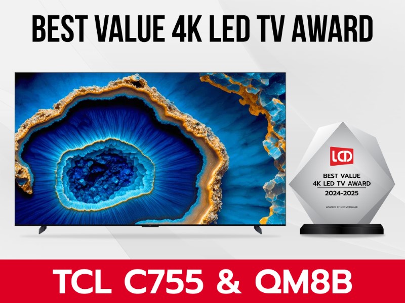 ทั้งนี้ รางวัล “Best of The Best TV Awards” ผ่านการทดสอบสินค้าอย่างละเอียดทุกมิติ ทั้งคุณภาพของภาพ เสียง ดีไซน์ ความคุ้มค่าของราคา และฟีเจอร์การใช้งานที่ตอบโจทย์ผู้บริโภคยุคใหม่ จากทีมผู้เชี่ยวชาญ LCDTVTHAILAND ที่ผู้บริโภคชาวไทยให้ความเชื่อถือเป็นอย่างมาก ซึ่ง TCL ได้รับรางวัล “แนะนำยอดเยี่ยม” (Recommended Recognition) ในประเภท QD-Mini LED TV สำหรับรุ่น C855 และ C755 ที่ได้รับการยกย่องว่าเป็นทีวีที่ดีที่สุด ในตลาด ด้วยคะแนนรีวิวสูงจากการทดสอบจริง พร้อมคำแนะนำว่าเป็น “ทีวีที่ควรมีไว้ในบ้าน” สำหรับผู้บริโภคที่มองหาประสบการณ์การรับชมระดับพรีเมียมในราคาที่เข้าถึงได้
